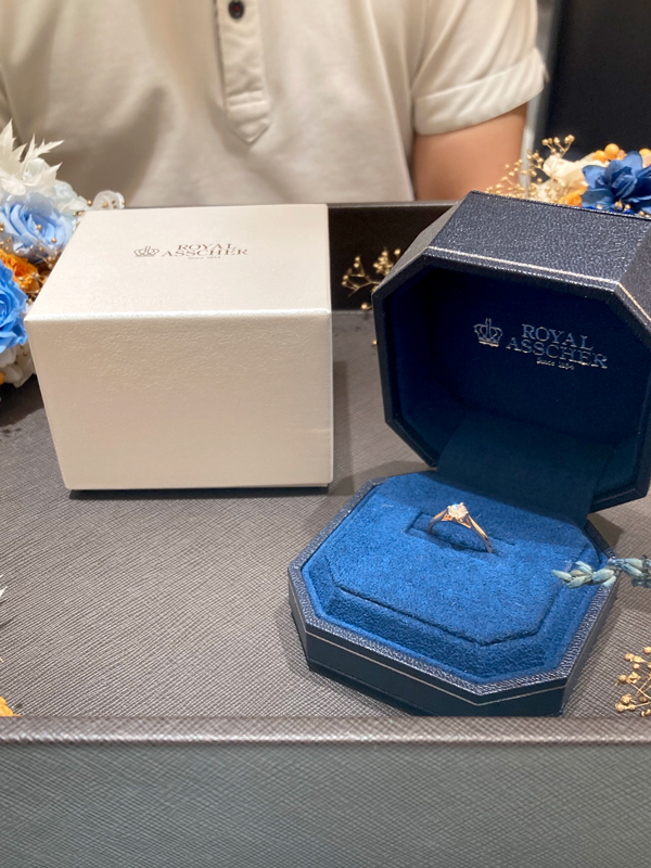 リングの素材をピンクゴールドにされたいとのことで、様々なブランドをまわられた中でロイヤル・アッシャーブティック名古屋をお選びいただきました。